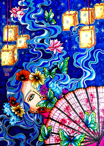 #anime #feathers #girl #goddes #headdress #indian #manga #mother #paint #painting #pipe #queen #smoking #tribe #watercolor #nativeamerican #oracle #princess #tribel #kaikosensei