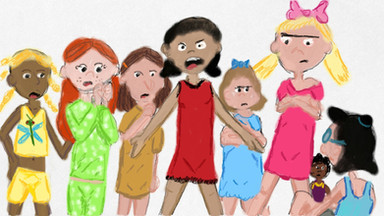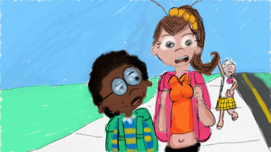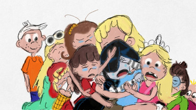 Lana and Lola sneak in the shadows looking at there siblings secrets while hiding. Lucy pops out of her hiding spot to criticize the twins on how they hide.