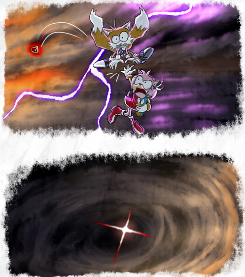 Amy pushes Tails off the Tornado for fear something will happen to him. The missiles nearly blow them. Amy was stuck in Tornado's seat and Tails tried to help her, but it didn't work. Amy smiled sadly at him and pushed him down before the missiles could explode on them. Tails was too traumatized to do anything and just watched in horror as Amy exploded inside the tornado.Β When he landed on the ground he just sit there with what was left of the tornado. He cried until Sonic and others found him.
