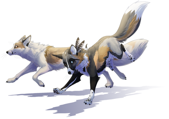 The third character also looks really interesting and the composition is pretty unique. The winged wolf looks cool, too. That pose ... *.* You did your 'job' really well.