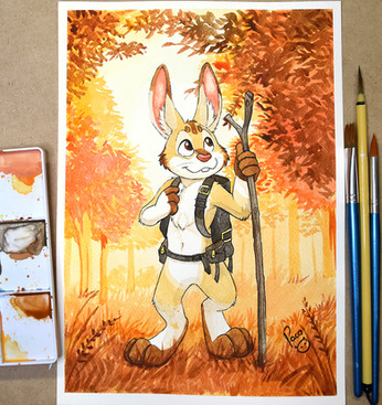 "Nothing goes to waste in my kitchen! Not when there's a hungry baby bunny boy about!"Watercolor, gouache, and colored pencil on hot press watercolor paper.
