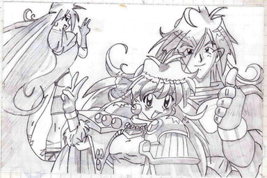 Hoy estaba viendo la serie de tele Slayers Try, y me dieron ganas de dibujar un fanart de ellos, nunca lo habia hecho. Siempre he sido fanatica del estilo de la Maestra Araizumi (o es maestro?! en una entrevista que lei, decian que es hombre, pero siempre he escuchado que es mujer...