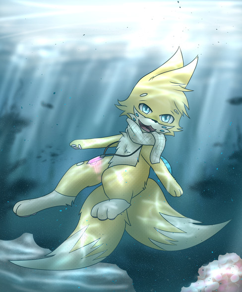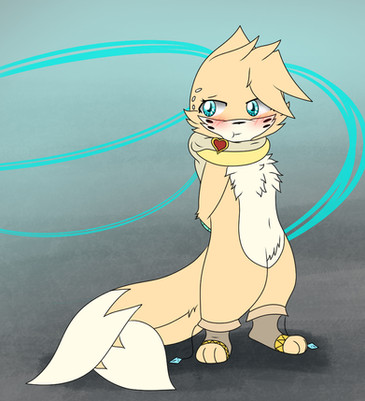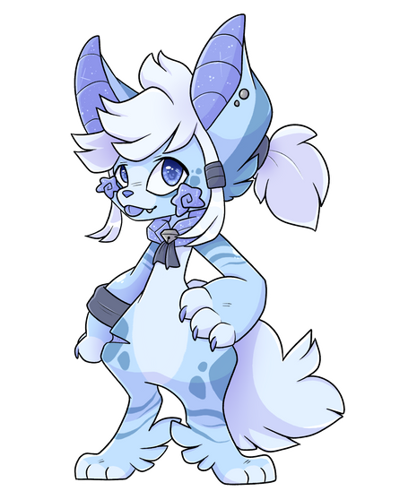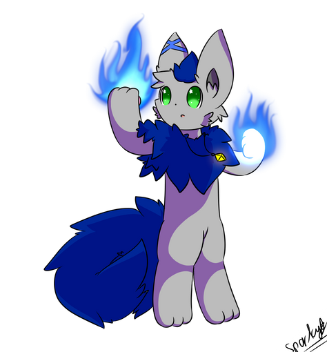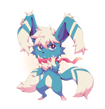 A lovely pokesona duel designed by myself and the lovely ZephyrstarzzI absolutely love them they are fluffy and cute! She is a bit shy and doesn’t like loud noises, will tend to hide within her scarf but you can get her to open up she playful and loves fruit!