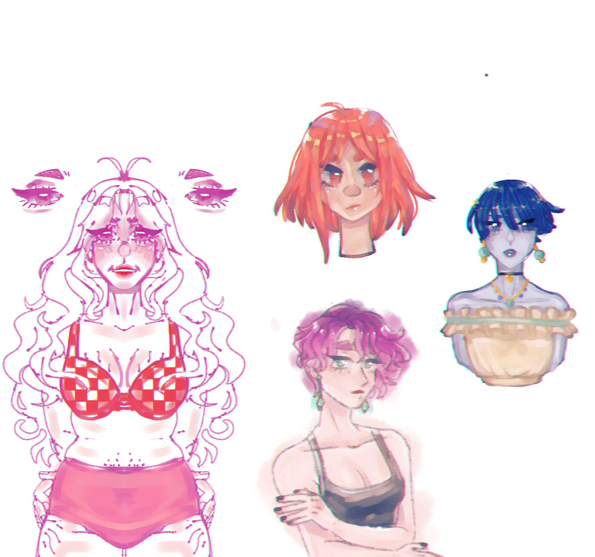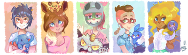 Can I just say, I really love how varied this is! Not in the sense of the colors, but just like how drastically different all your characters are from each other in appearance and personality. And putting them all together like this, you can really tell just how different they are and I just really love that! Sometimes I feel like my characters all bleed into each other too much, I hope I can make something like this come across some day