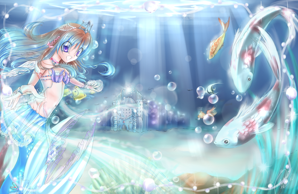 woah it is very captivating and bright, i love how this is put together!! the more you look at it, the more you see the details, like the wings of the fairy!! this is an amazing artwork peice!! keep it up!! ;3