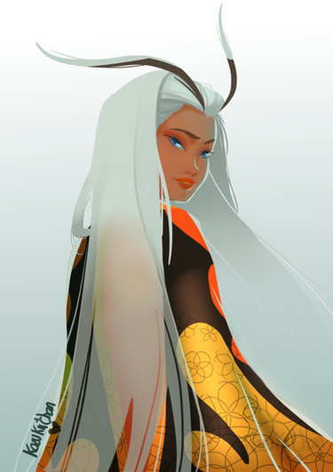 Like best too you keep that smoldering glow of her hair done with her eyes and with the way she holds back that grin on hers, oh man what bombshell she is. Major thumbs up to you KazMidnight and all that you've done here to create a truly outstanding Hekapoo of your own!