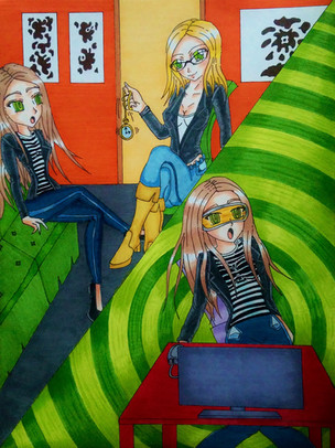 can you draw me hypnotizing my so called sister, to attacking her friends, , and and afterwards putting her into an internal sleep?????