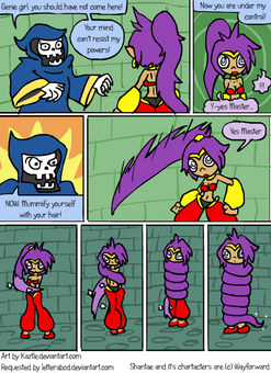 Maybe you can send this comic as a idea to Wayforward, but it need some changes okay because it can be a update for Shantae: Risky's Revenge like one of my ideas and I believed the half-genie hero still has her magical genie powers in your other two comics, can you do it all for me please.Ā