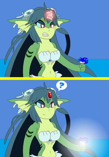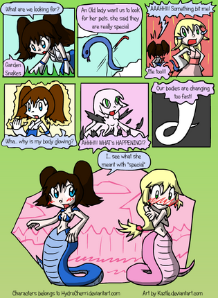 Request 2015APR11B from Sorachi-Jirachi Comment .Lumina and Aleta transformed into vicious nagas by a crystal shaped like a serpent.