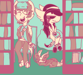 Okay. Okay. It stopped. Everything was going to go smooth. No. Her hooves weren’t slipping. No. She wasn’t getting nervous. Everything was fine. She continues the process of climbing up the shelf case, causing it to wobble even more every time she got further up. Eventually she was sprawled out on top of the shelves, panting softly and trying to calm her racing heart.