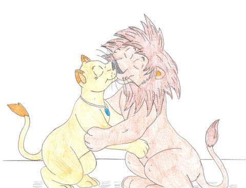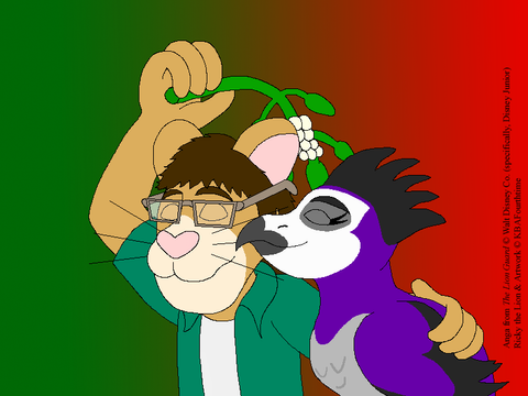 Again, it's of Anga, the Martial Eagle and replacement Keenest of Sight of the titular animal knights of the TV series The Lion Guard, with her wings wrapped around me, Ricky the Lion (as a teenager) giving me a gentle peck (as an equivalent to a kiss). I have one of my hands/paws places gently on her back.