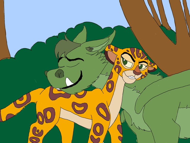 The rock Anga perches her feet on behind me, and the tree, they are kind of like those at the end of the episode "Friends to the End," in that final scene where Kion takes a nap.