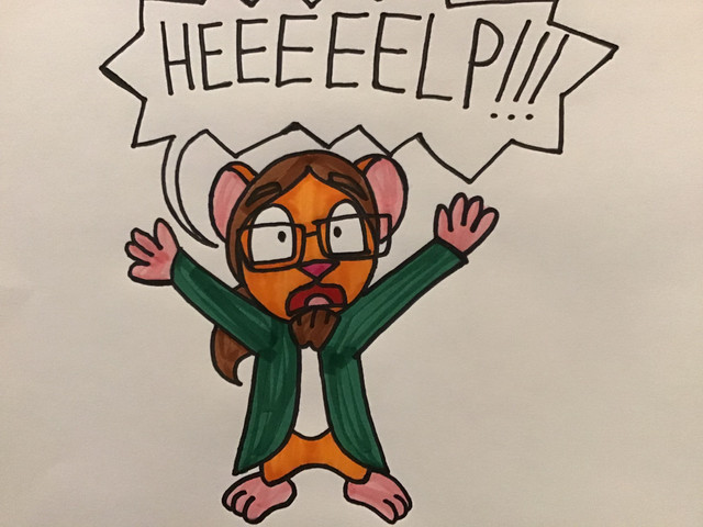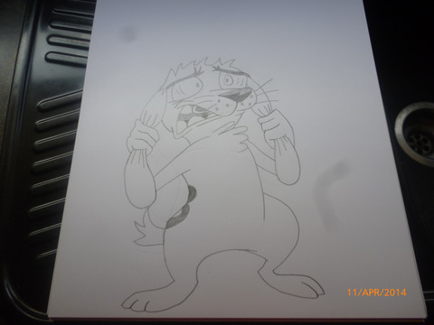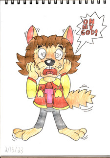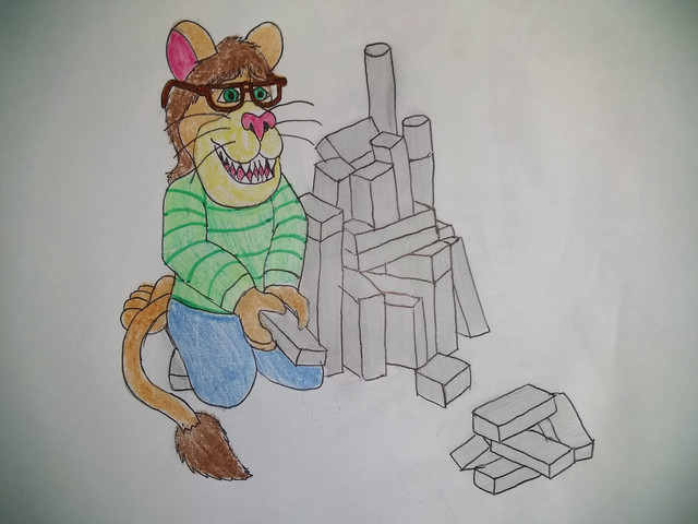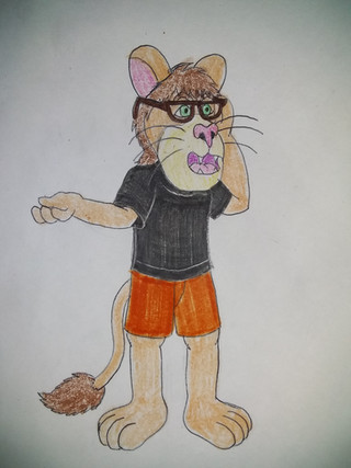 This is a mixed media picture (again, crayons and markers) of me, Ricky the Lion (as a cub), sitting criss-cross applesauce, while placing my hands over my ears (which get folded).Related content