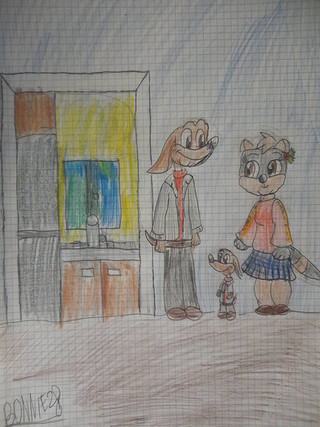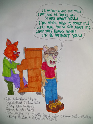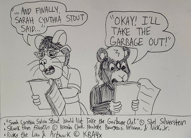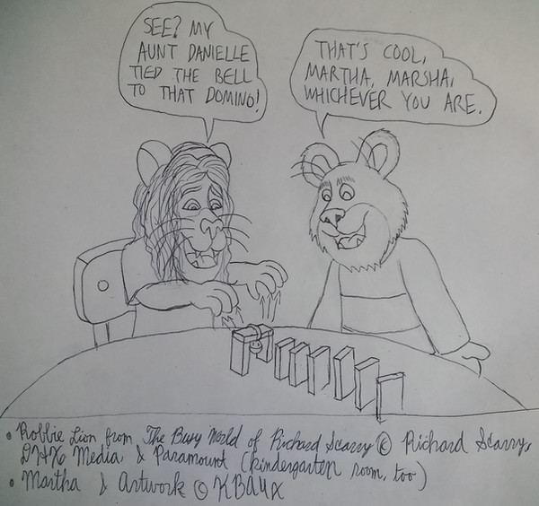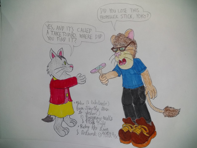 For JustinandDennis and anyone else who likes the show Timothy Goes to School.I was going to add my triplet C2s (my triplet second cousins), but I decided the view and location would be too much trouble, especially where to put their (shod) feet, so I decided not to add them... and I decided not to color the picture either. For this reason, and because not every pencil mark could be cleanly and completely erased (I didn't bother with the speech bubble or tracing over that, though), I've decided to add this to my scraps.