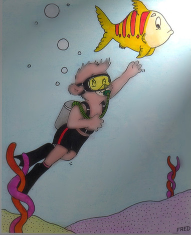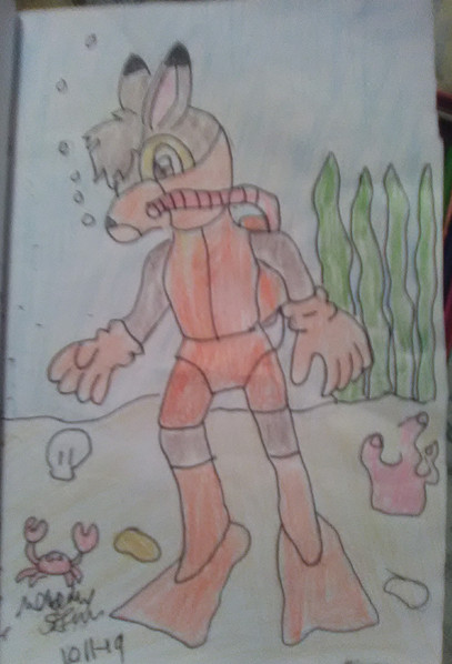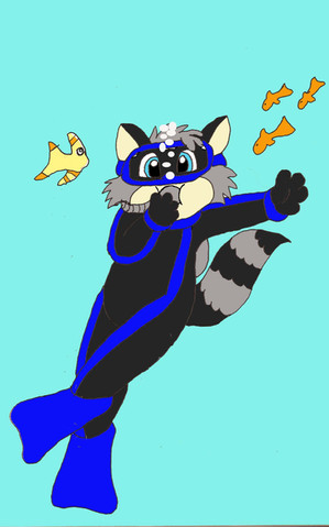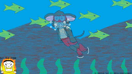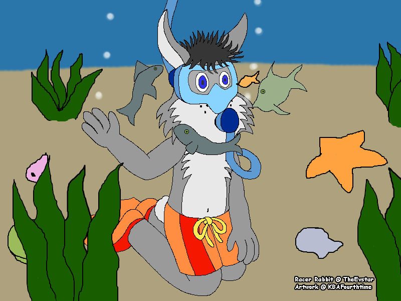 Made with DeviantArt muro (Actually, the ocean floor, most of the fish, and Racer himself, were done in Photoshop. I just finished with Muro because of severe weather. UPDATE: Finishing touch on the fins on Muro.)As requested by for his birthday. I never remembered or caught the flipper colors... you know, the fins he wears.