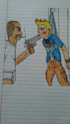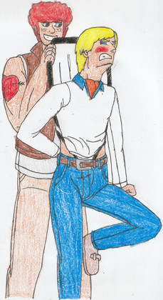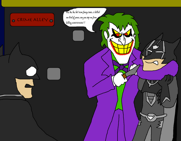 "Let me ask you a question, Boy Blunder...you ever play Russian Roulette? Oh, of course not! What am I asking? Ya know, most people start by putting the gun up to the temple. Now, as amusing as it is to watch a persob rag doll, if you're trying to interrogate them...well, starting with the temple is just plain stupid. You'd blow a man's head off before he has a chance to tell you anything useful."Joker and Robin are property of DC Comics.