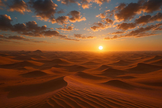 Sunrise in the early morning (5:30 am). We slept in an Bedouin tent and watched this nice scenery after the night was over. Actually this picture was taken at the Sahara desert in Morocco. The part is also named Erg Chebbi [link]Related content