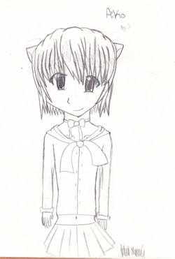 A character im using in an RP. Based the picture on one of the characters from 'Sky Blue' an ace anime. I loved the guys hair, so i sketched him, alterd what i needed an so forth, so i guess i cant claim any rights to it because of this, as if i would anyways!!anyways, the pointy ears give away his lineage, and he's basically a kind of cleric/druid/mage. Kinda cool, but yeah, as with all these lil cell shade things, done from a pic i drew on paper, it was only roungh and not worthy of a scrap, but scanned in and went over the lines and coloure,d hey presto!