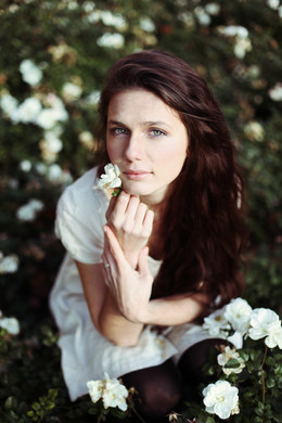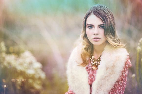 Gorgeous shot, model is beautiful, pose is great, love the colors and depth of field. Seems a little dark to me but I love catchlights in her eyes, really make her eyes pop.
