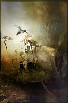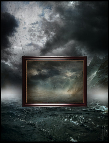 Another landscape try, had problems with the reflections and I had wanted to the row of graves to continue, but I found out that I had done one thing wrong and I was too lazy to cut more tombstones out. So... only four. Like a family grave.