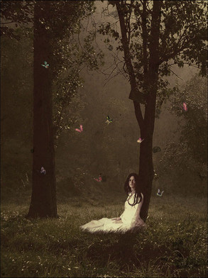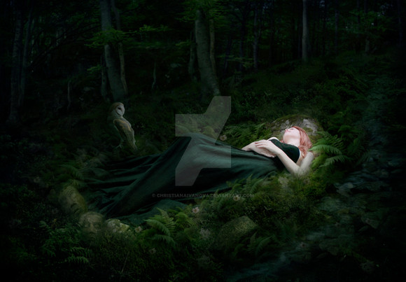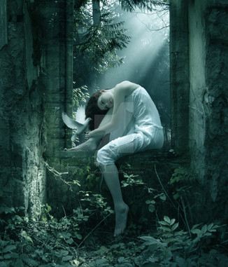 She braids feathers in her hair, wishing she was a bird. The chirping of their tiny voices never awakes her from this deep, clumsy slumber. The light of the forest is so strange, so ungentle. The smell of autumn lingers in the air, but her mind is still filled with summer. She breathes the scent of cold stones, the complex texture of dark woods, her fingers buried in the soft feathers, wishing they were her wings.