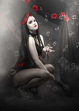 i wanted to create a similar image with a dark gothic feeling, using only some elements (the letters with lipstick prints).