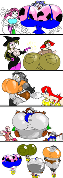 Jen has been flatten and folded with her boobs grow to become massive pillows for her bunny suited girlfriend