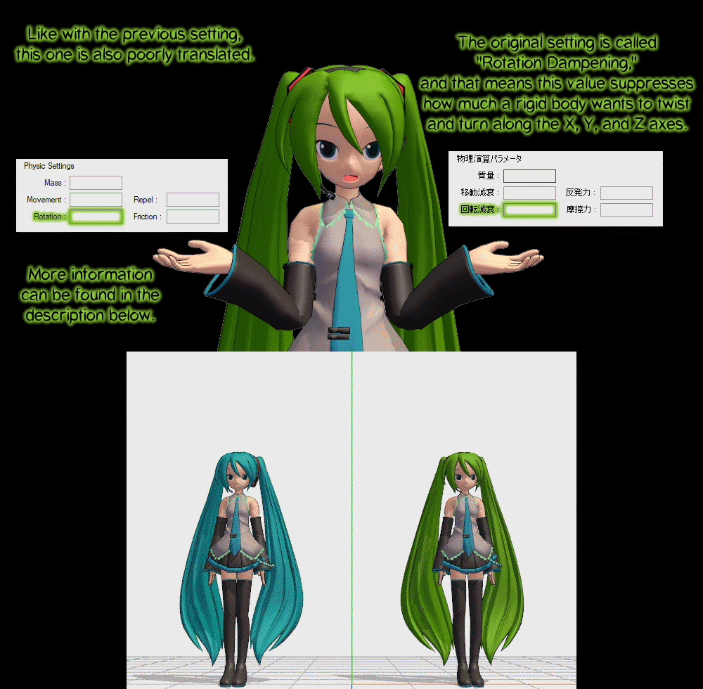 this tutorial is outdated compared to the newer versions of MMD, also it's old as hell in general and I don't know why you're looking at it in general, but the settings should still work and create the same effect providing you register the gravity point and have physics turned on.