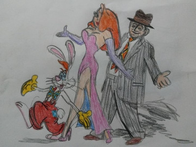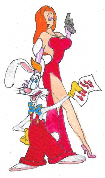 Roger Rabbit and Jessica have gone monochrome! I pictured them as if they had been created during the same era as Steamboat Willy(ie?).My goal was to make them as simple and round/fluid as the old B&W cartoons looked!