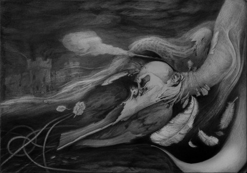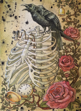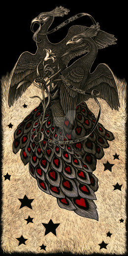 This is very much so the most original Death card I think I've ever seen. The detail is mind blowing and I love (for some reason) that Death as a bird has more than two arms. There is a Unicorn deck (tarot cards) so I've seen Death's Horse as a unicorn before, but I love that he's more a silhouette in this piece & bound to Death's heart. Amazing concept.