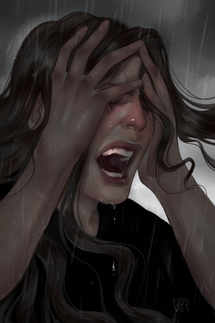 Great work, the emotion is undeniable. I like how close up she is,how pinched her face is and your color choices.