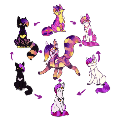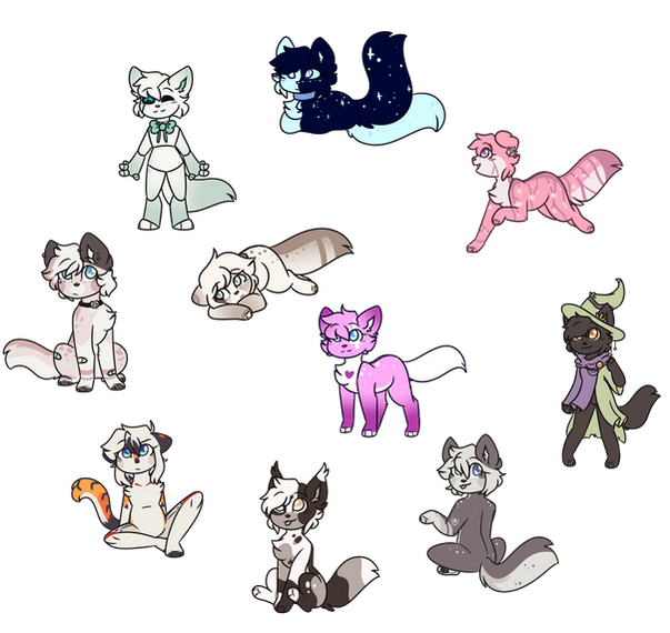 They're all super adorbs! And really like the little squarey-shaped shines in their hair that you did and their simplified paws, cool stuff yo c: <33