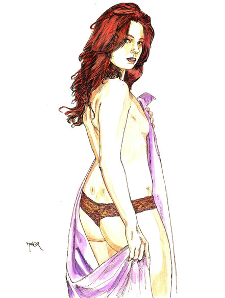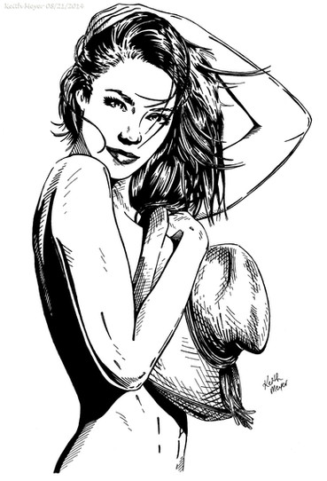 Sketched in pencil before being inked by hand. Reference photo was of model Elizabeth Smith.