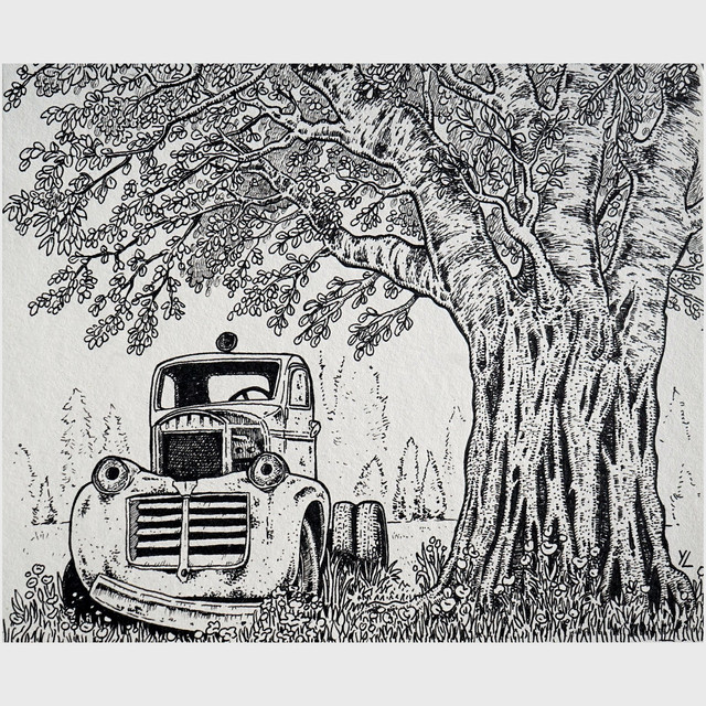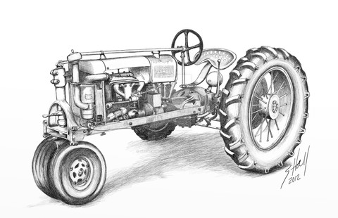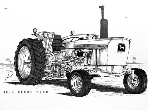 Sketched in pencil and then inked by hand. John Deere Model A. For a while now I have been trying to work in more rustic/rural drawings again and I have always liked the look of the old John Deere tractors.Pencil version: