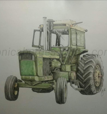 Ink drawing of a John Deere 4020 tractor. Sketched in pencil first and then inked by hand.