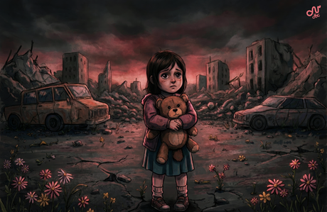 Oil on canvas; 12 X 18 inches.I borrowed some imagery from some older work for this, and modeled the girl after a 2019 photo of a Russian schoolgirl staging a protest. The painting still needs a little work, mostly on the girl and her cat, so I will be uploading an improved version in a few days. Enjoy.