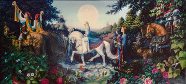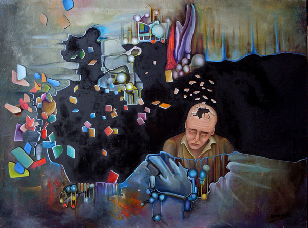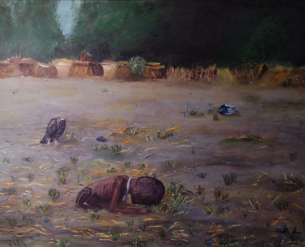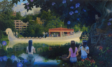 Oil on canvas; 12 inches X 20 inches. This was inspired by a photo on Yanadhyana's profile page that shows her working on a lovely mural.I suppose that an alternate title for this could be: Art in the Age of Catastrophe.