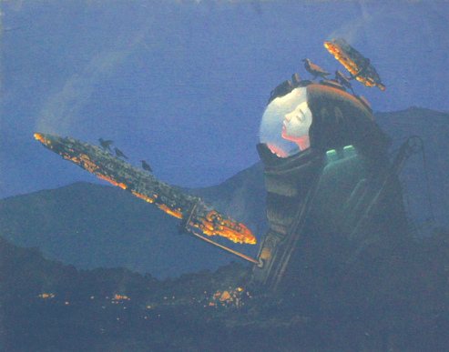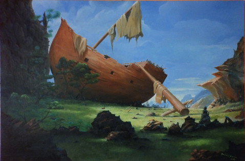 Thank you! Β When I did the painting I had in mind a tale of big dreams brought to nothing, but when I originally showed this (in a previous DA incarnation)I got into a brainstorming exchange with another Deviant. Β The story that emerged from that had the girl being a descendant of the crew of the ship. Β The ship wreck was regarded with superstitious dread by everyone except this one girl who liked to bathe and swim Β in its shadow. Β One day she gets up the nerve to paddle out to the wreck where she discovers and befriends an android who was left to guard the wreck . Β He was forgotten in the meanwhile, but, being ageless and having never received orders to the contrary, remains to faithfully guard the decaying wreck.