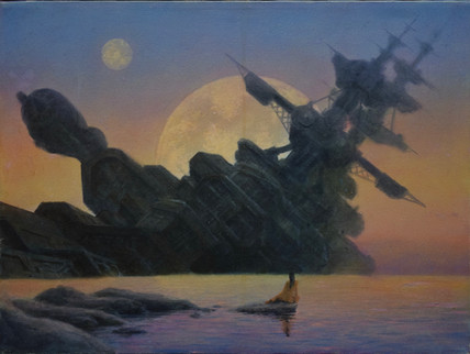 I can't quite recall who was inspiring me back when I painted this. Probably Jack Vance and Roger Zelazny, but I have been reading their stuff all my life. Maybe I should try to figure it out: my current work is technically much better, but lacks the magic I felt back then.