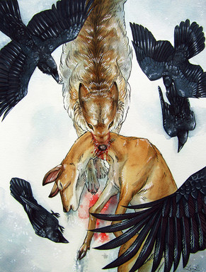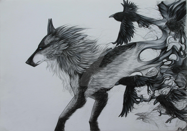 i love the way the birds are flying out his back and hes drippin and the sky looks all torn. great job!