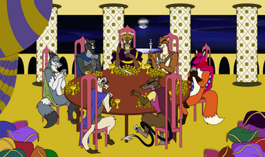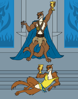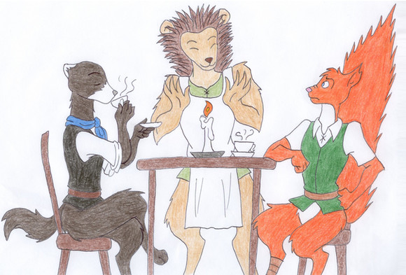 Commission for , who requested a scene where Wally the weasel dutifully serves tea and carrot cake to his master, Retsubnad the affably evil, well-intentioned extremist hare-wizard.Fun fact: Wally's closed eyes are inspired by how anime characters are when they're particularly happy/squeeing, but I lessened the roundness and made them look more realistic.
