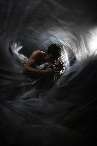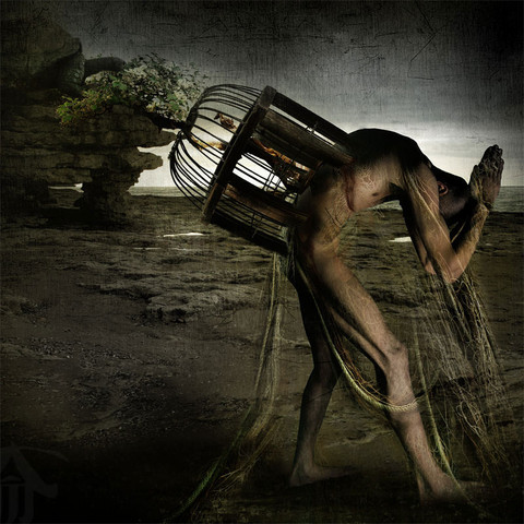 Scary. o.o But I like the idea of a person in a net. Smart. :]
