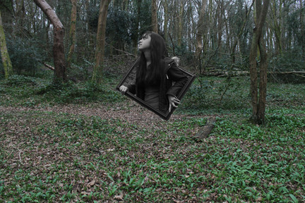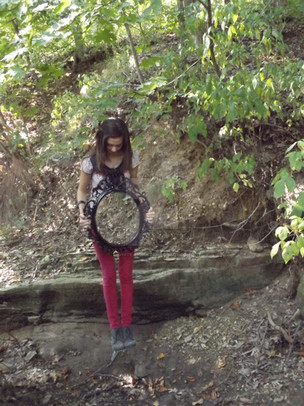 Ooh I love this pic! It's really cool how only the camera shows up in the mirror, and plus the forest it gives a spooky effect. And the white and red of her shirt stands out against the dark forest and fits in perfectly. Good job!