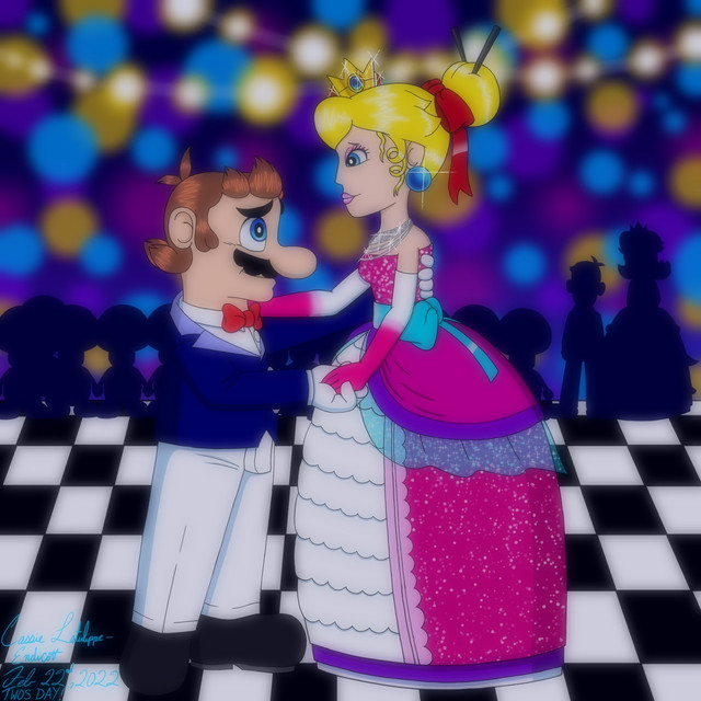 This just sort of came to me while I was listening to a very specific song, "If I should ever lose you" by Chicago (wish I could provide a link but...can't find it online. sorry.I admit to being a MarioxPeach fan, (as well as a LuigixDaisy fan) so the idea of the drawing here is that they're sort of just realizing-or at least mario is-how much they love each other...or something, as they're dancing...(in my mario world, I think Peach would have loved him for a long time, but Mario would be rather slow on realizing it. People can be like that. I should know. -.-