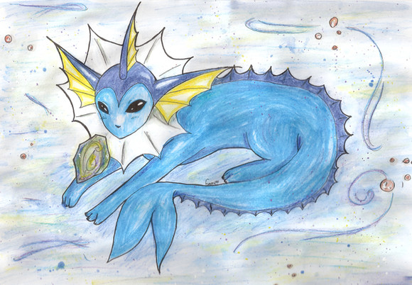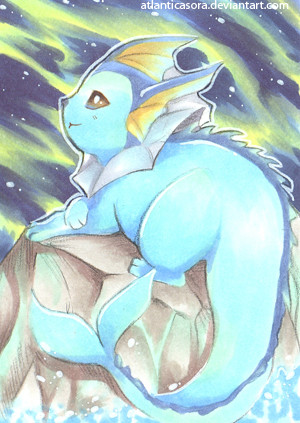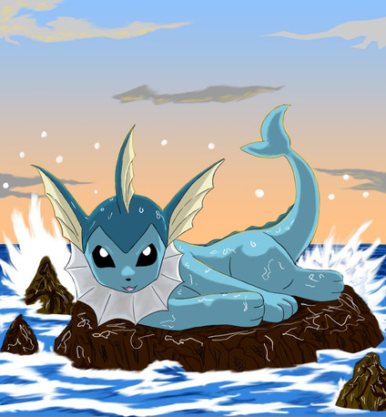 Funny thing is that we don't actually see the sunset thereHey! Traditional art! That's a rare thing with me XD I drew this last night at around 4AM X3 There's so much that went wrong with it though XD First of all my bic (yes I lined this with a crappy ball pen XD) was acting funny so I ended up making my lineart all fuzzy (thankfully the coloring hid most of it XD) D8 Also I happened to completely forget that the spike on Vaporeon's head was a fin So I inked his other ear and then had to put some liquid paper on it (we cn still see it over Vap's head ._.) and re-ink XD Then came the highlight on the waves... Seriously, the orange shines ended up looking so horrible XD Ugh XD