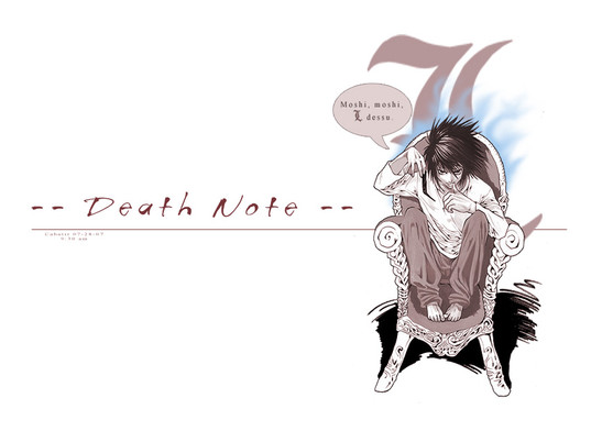 One thing I absolutely love about L is that he loves to EAT!! I mean he will be talking about condemning Kira and eating some cake at the same time!! I love this wallpaper!!