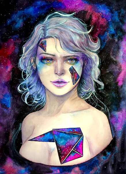 #abstract #fantasy #figure #girl #painting #redhair #space #stars #texture #watercolor #watercolour #galaxy #surreal #surrealism