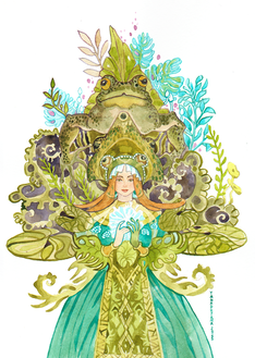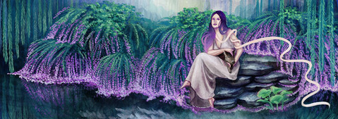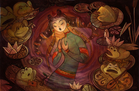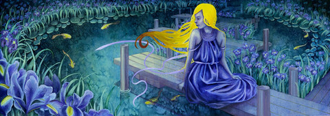 #cardart #figure #gouache #hanafuda #illustration #japanese #lightening #lillypads #painting #trees #umbrella #water #watercolor #willowtree #traditionalart