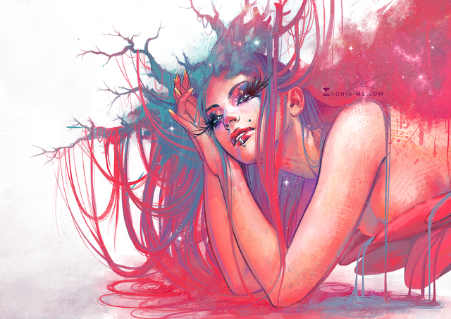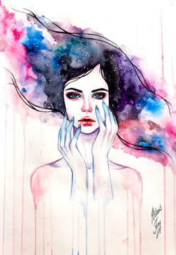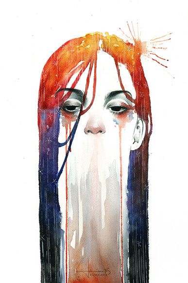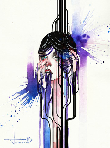 Kelogsloops, your watercolours will never cease to amaze me. The bubble of hair is a really interesting concept, what gave you the idea?