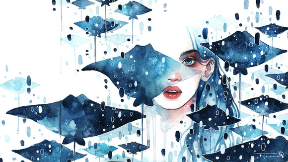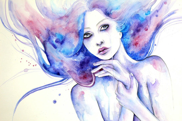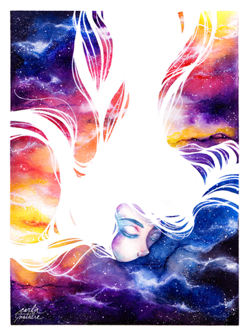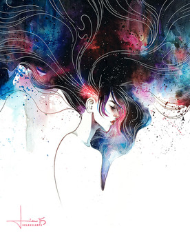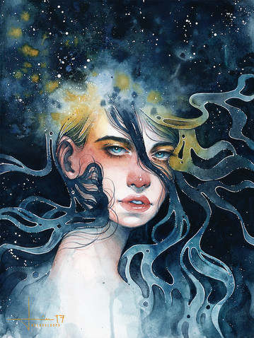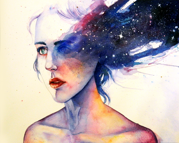 #animals #birds #bleed #cosmic #digital #face #female #galaxy #media #night #painting #portrait #sky #splash #star #starry #texture #watercolor #watercolour #art